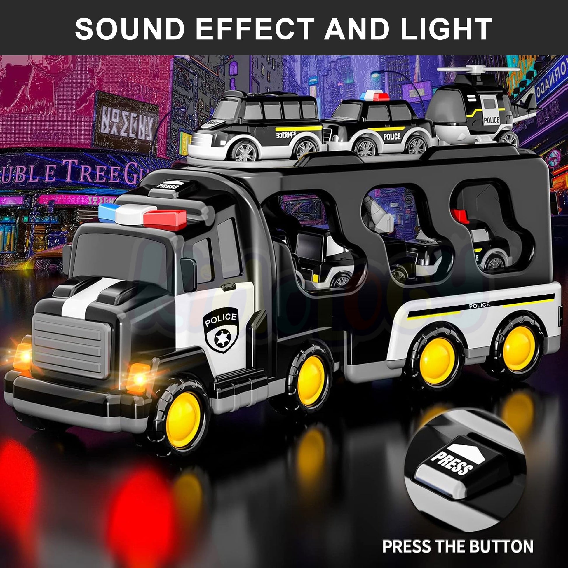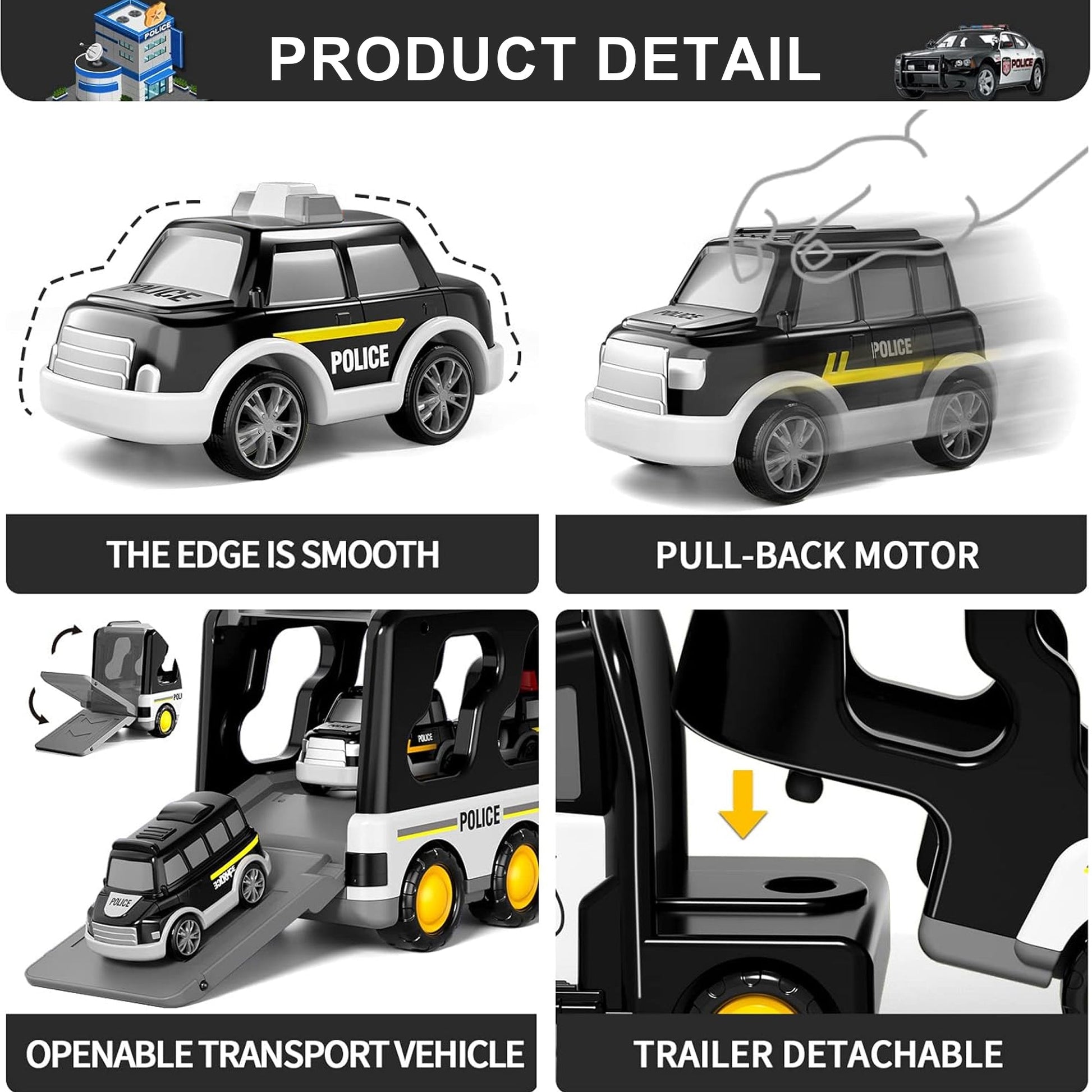 ๐จ Realistic Lights & Sounds โ Press the button on the truck to activate sirens and flashing lights, just like real police vehicles.