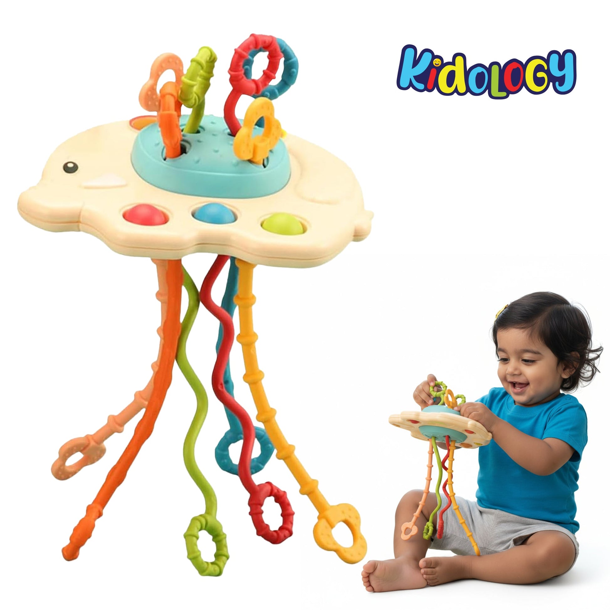 ✔ 1 × Kidology Pull String Montessori Baby Toy (Elephant Design)