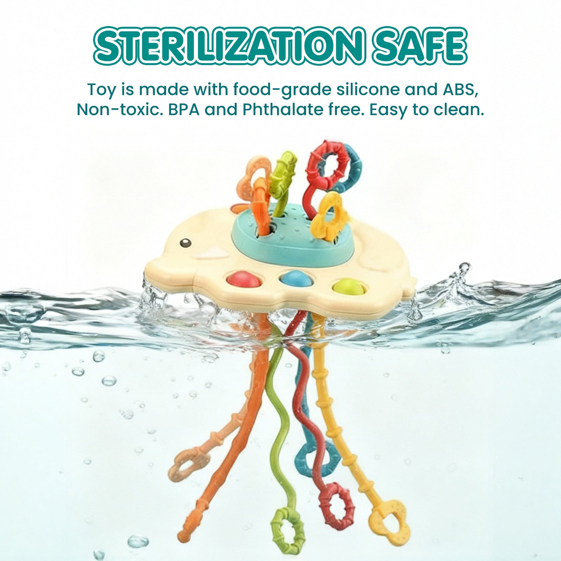 ✔ Give the toy to your baby and let them pull the silicone strings to enjoy sounds and vibrations.