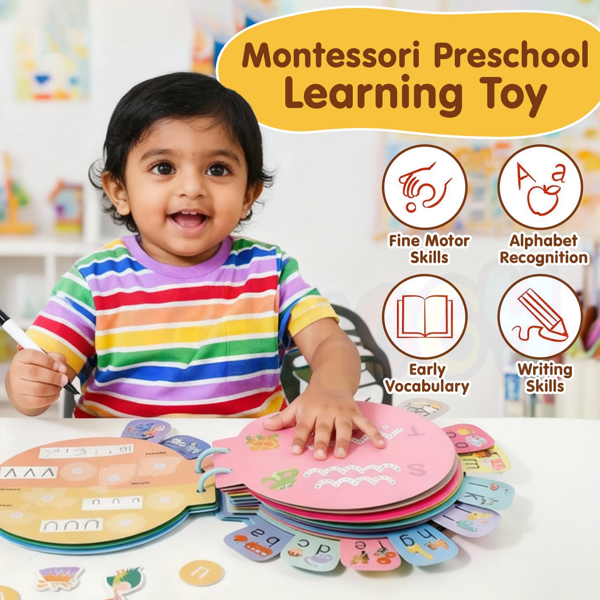 Make early learning fun, engaging, and completely screen-free with the Alphabet Busy Book for Kids. Designed using Montessori principles, this interactive learning book helps children recognise letters, trace shapes, and build early spelling skills through hands-on activities. The reusable, wipe-clean pages encourage repeated practice while improving pen control, fine motor skills, and hand-eye coordination. Compact and travel-friendly, this quiet book supports independent learning, boosts confidence, and keeps young minds happily engaged at home or on the go.