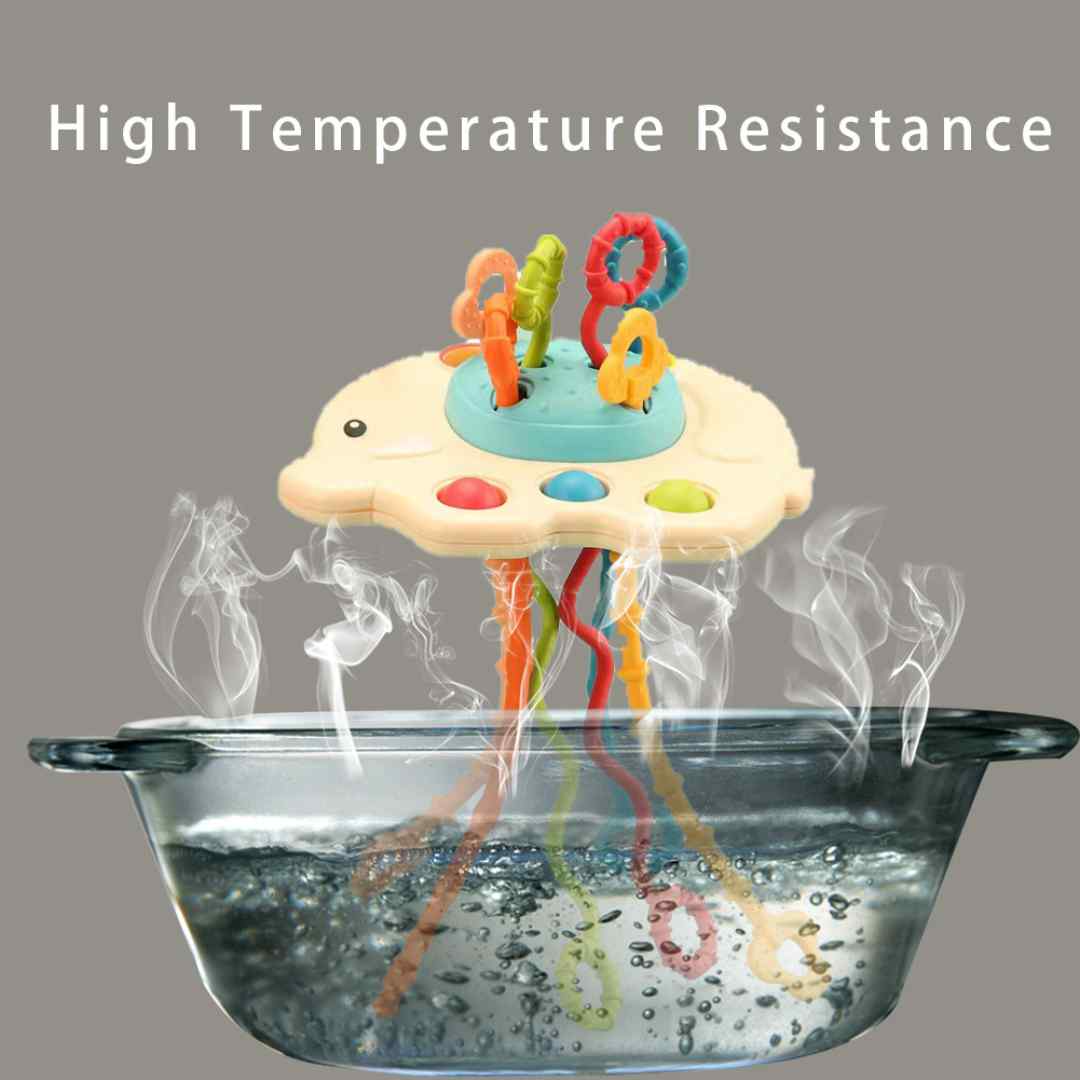 This Octopus Silicone Pulling Toy has a unique design, which can develop kids' motor skills and sensory perception by pulling up and down silicone ropes, and pressing and pushing buttons. The toy will keep the baby occupied and entertained for hours.